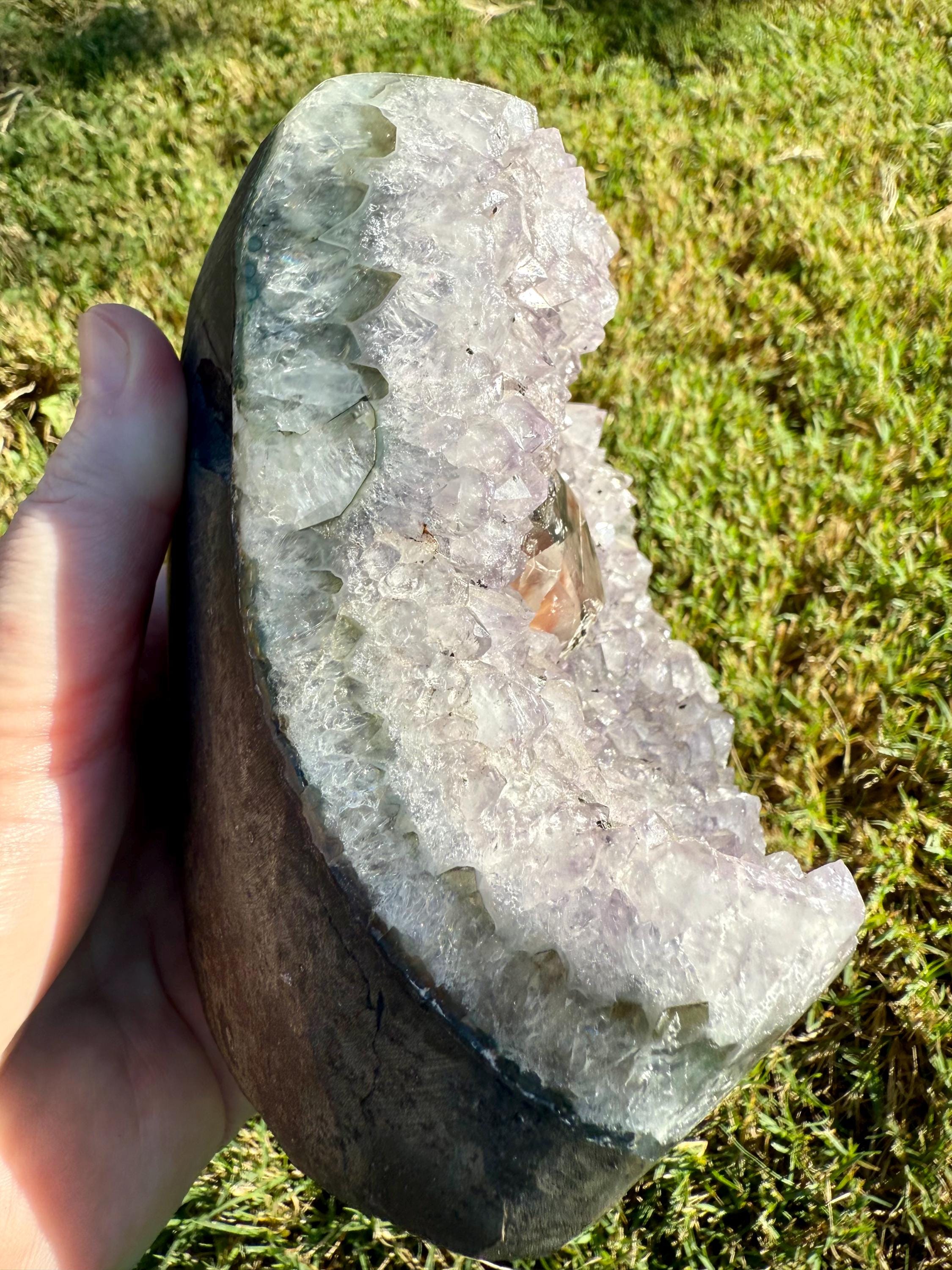 Rare Uruguayan Amethyst Geode with Calcite Crystal