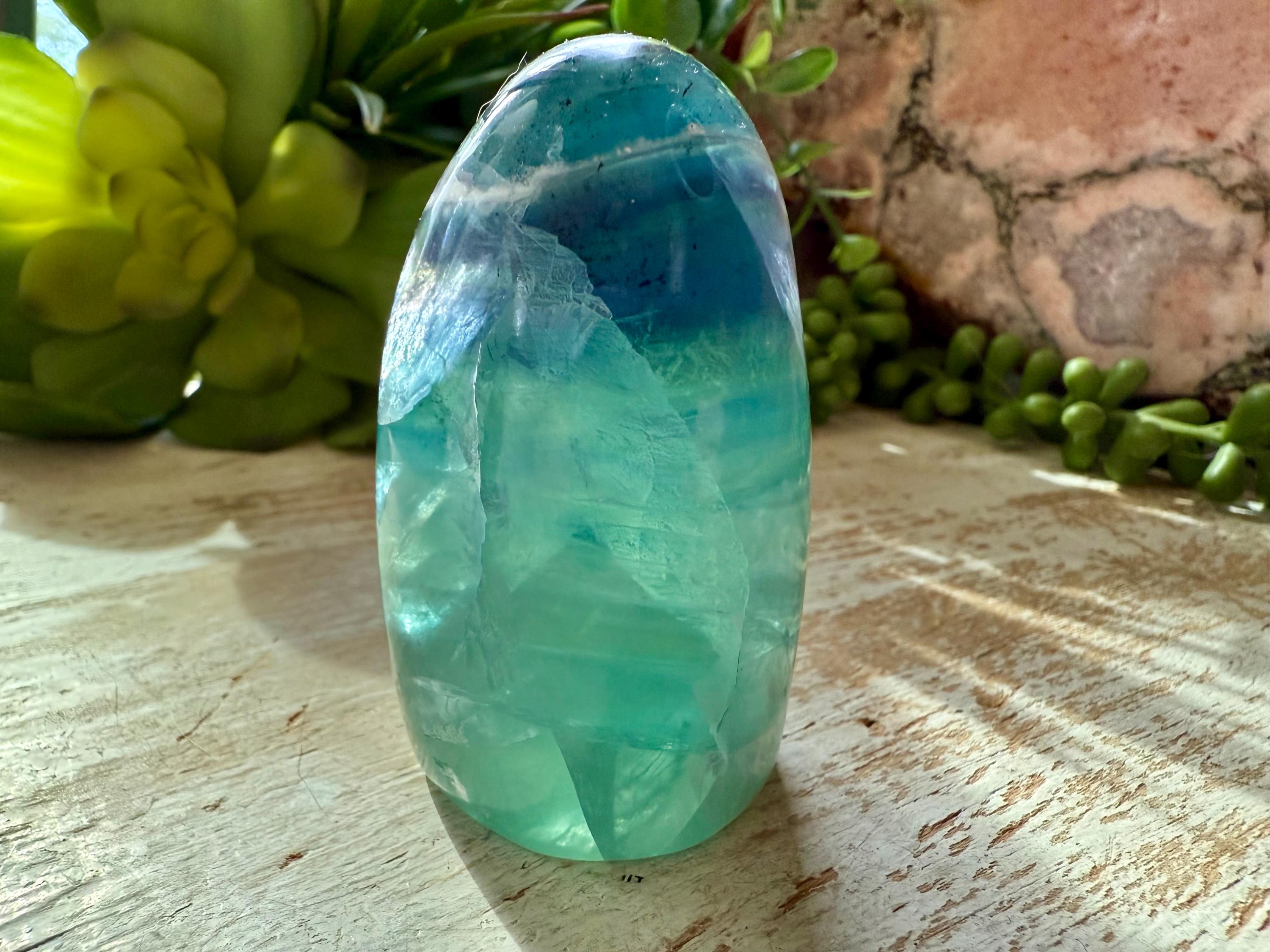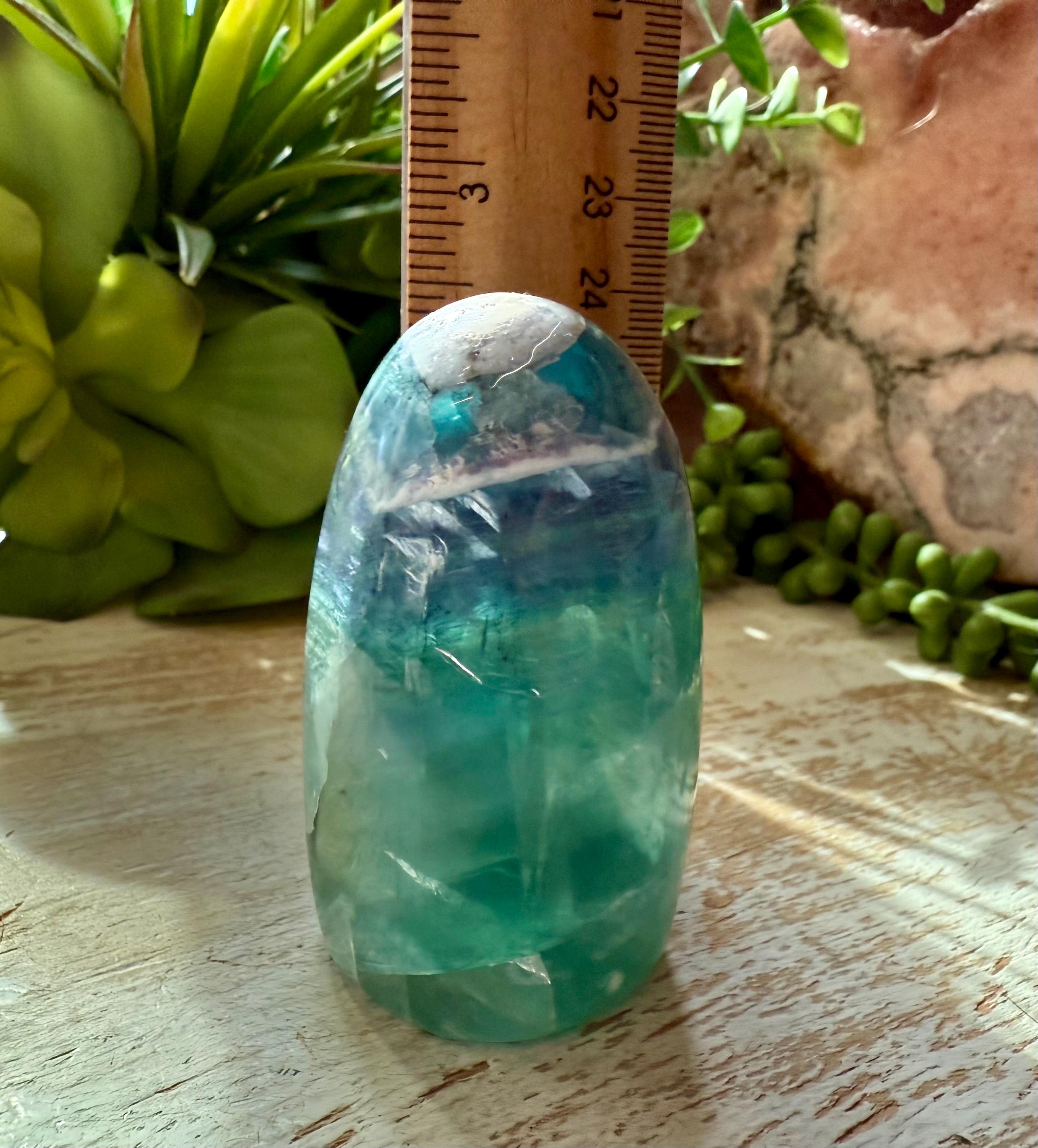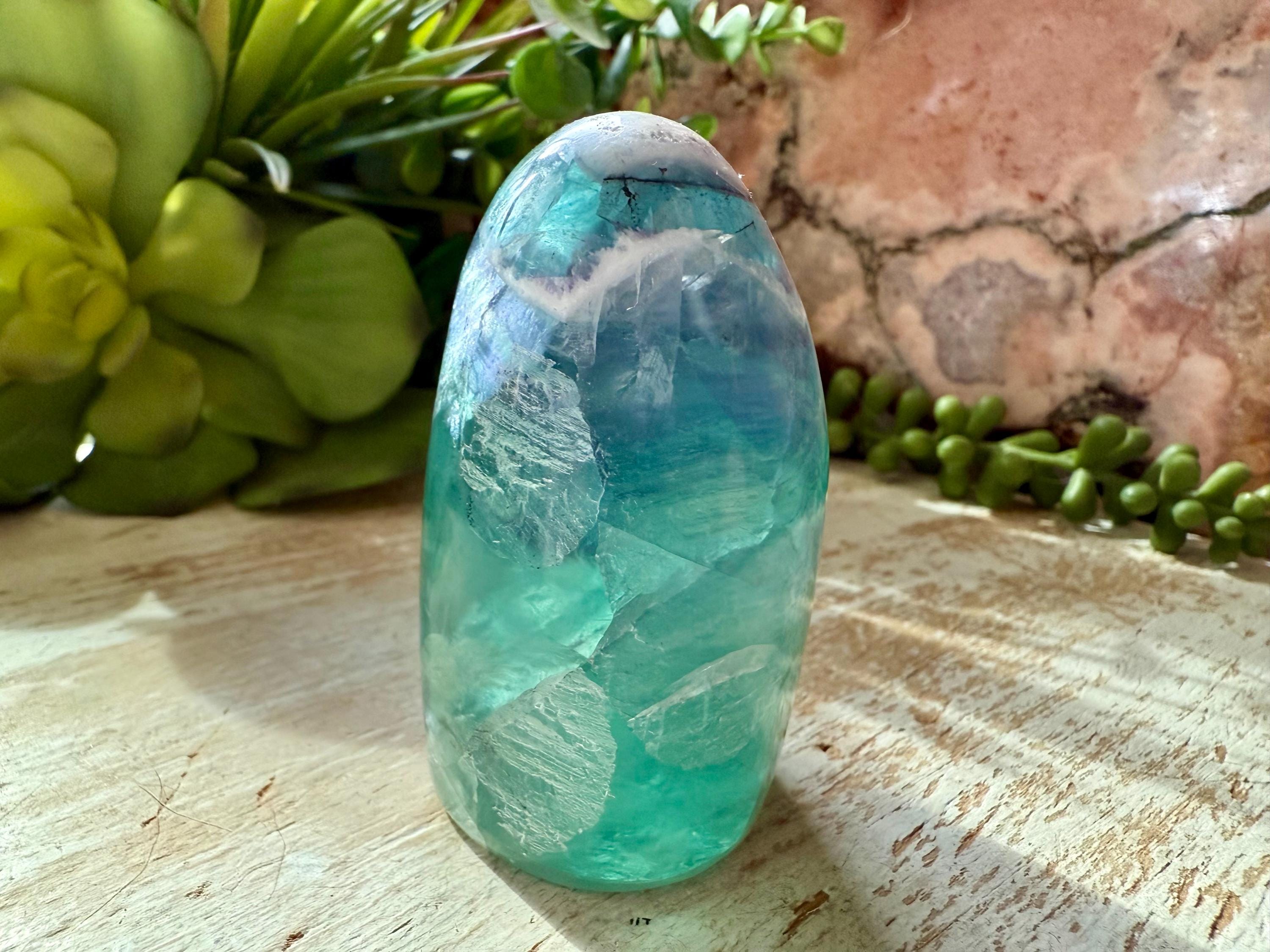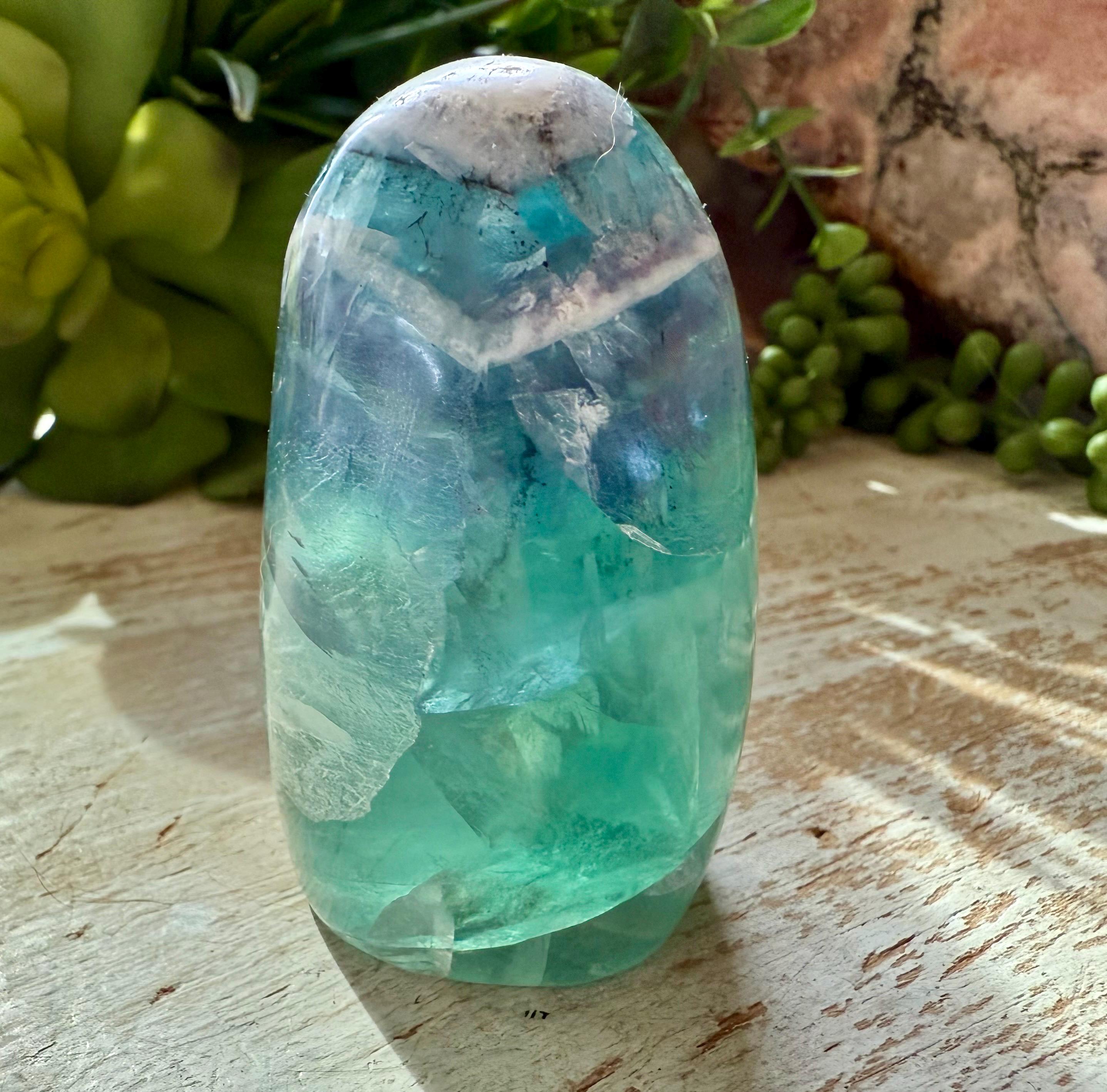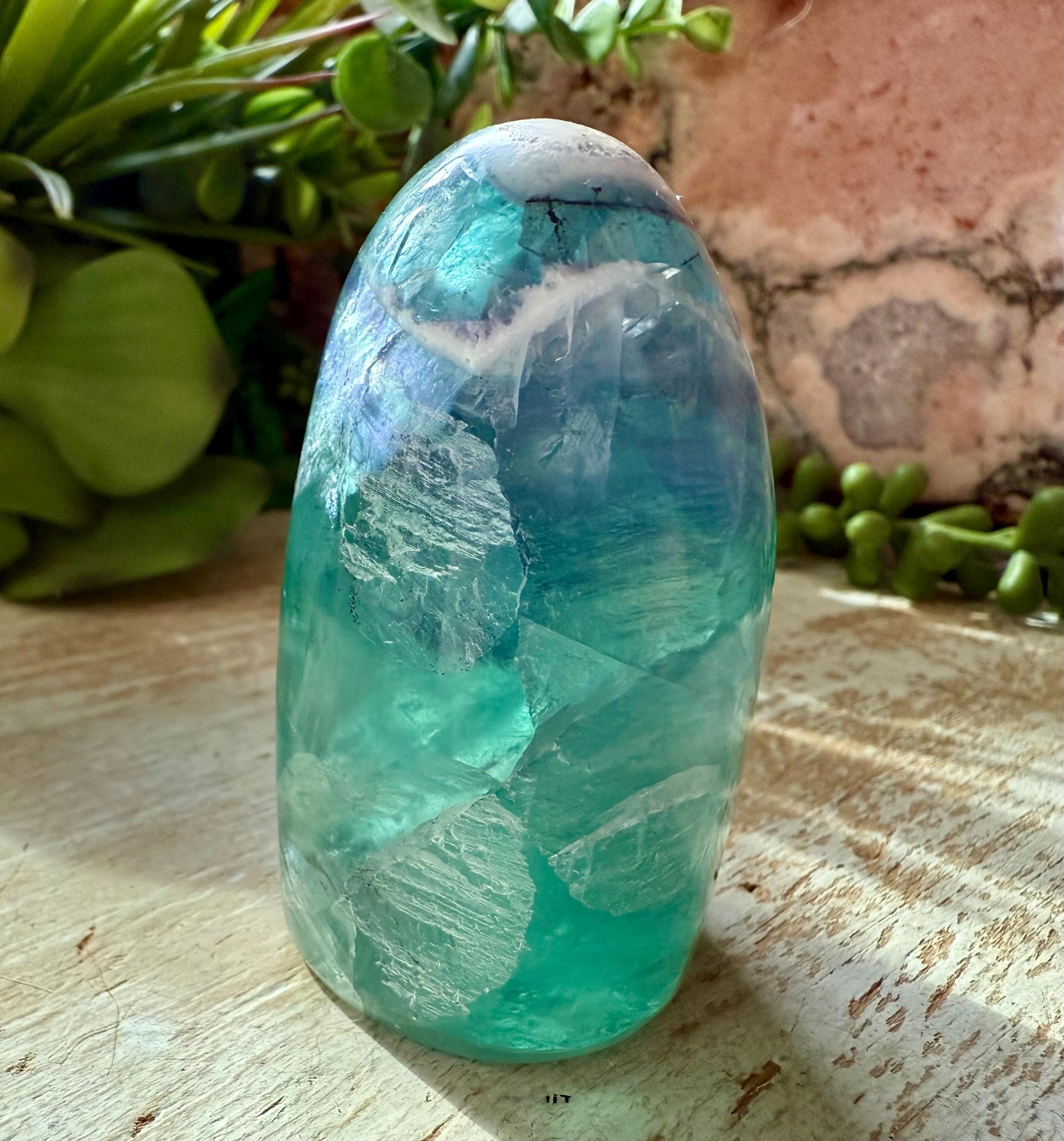 This Fluorite Freeform tower is masterfully hand carved. The freeform pictured in these photos is the exact crystal you will.