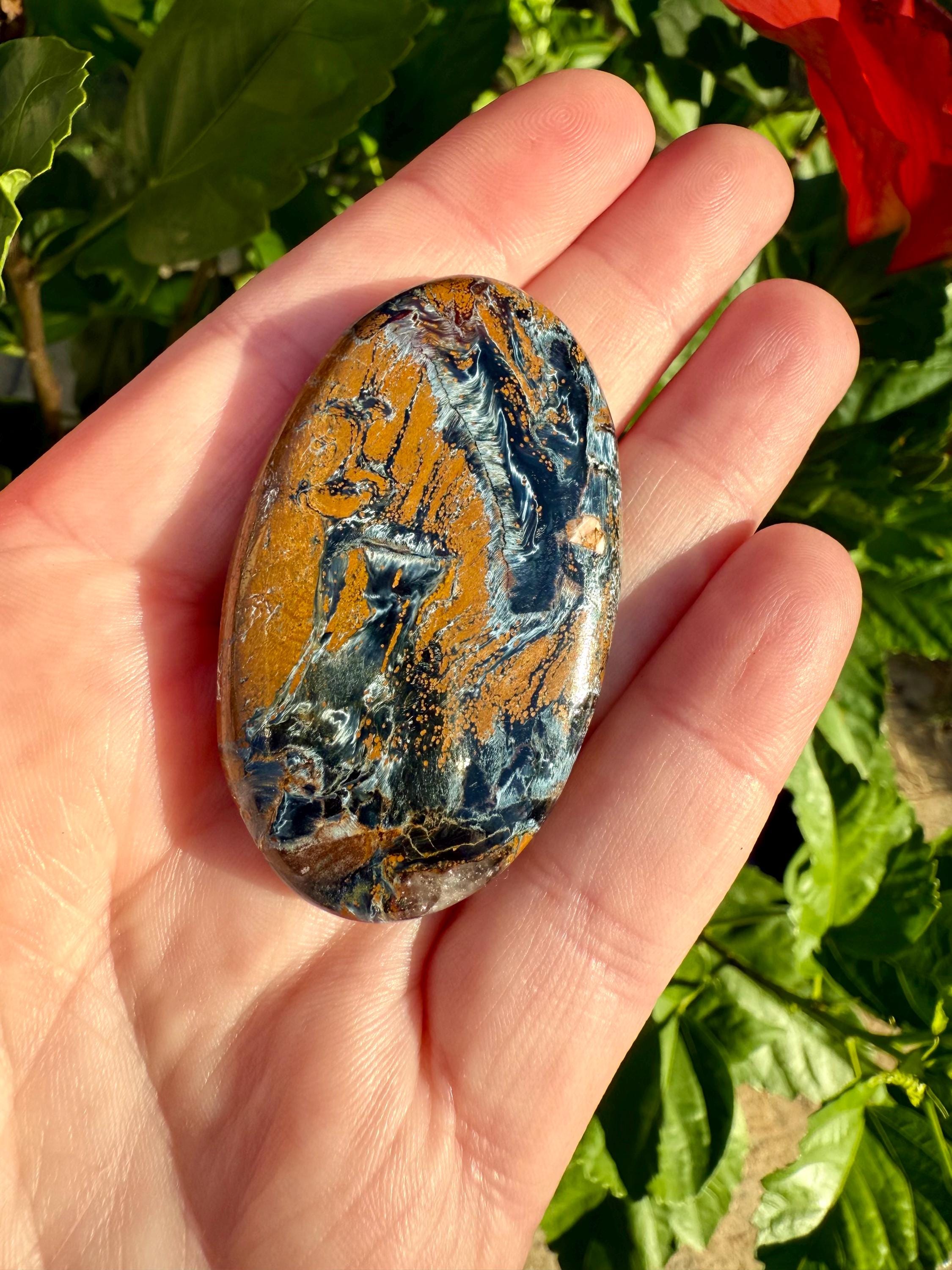🌟 Don’t miss the chance to own this rare Chatoyant Pietersite Palm Stone — each one is completely unique and won’t be repeated. Add it to your cart today and invite its empowering energy into your life (or gift it to someone special)! ✨