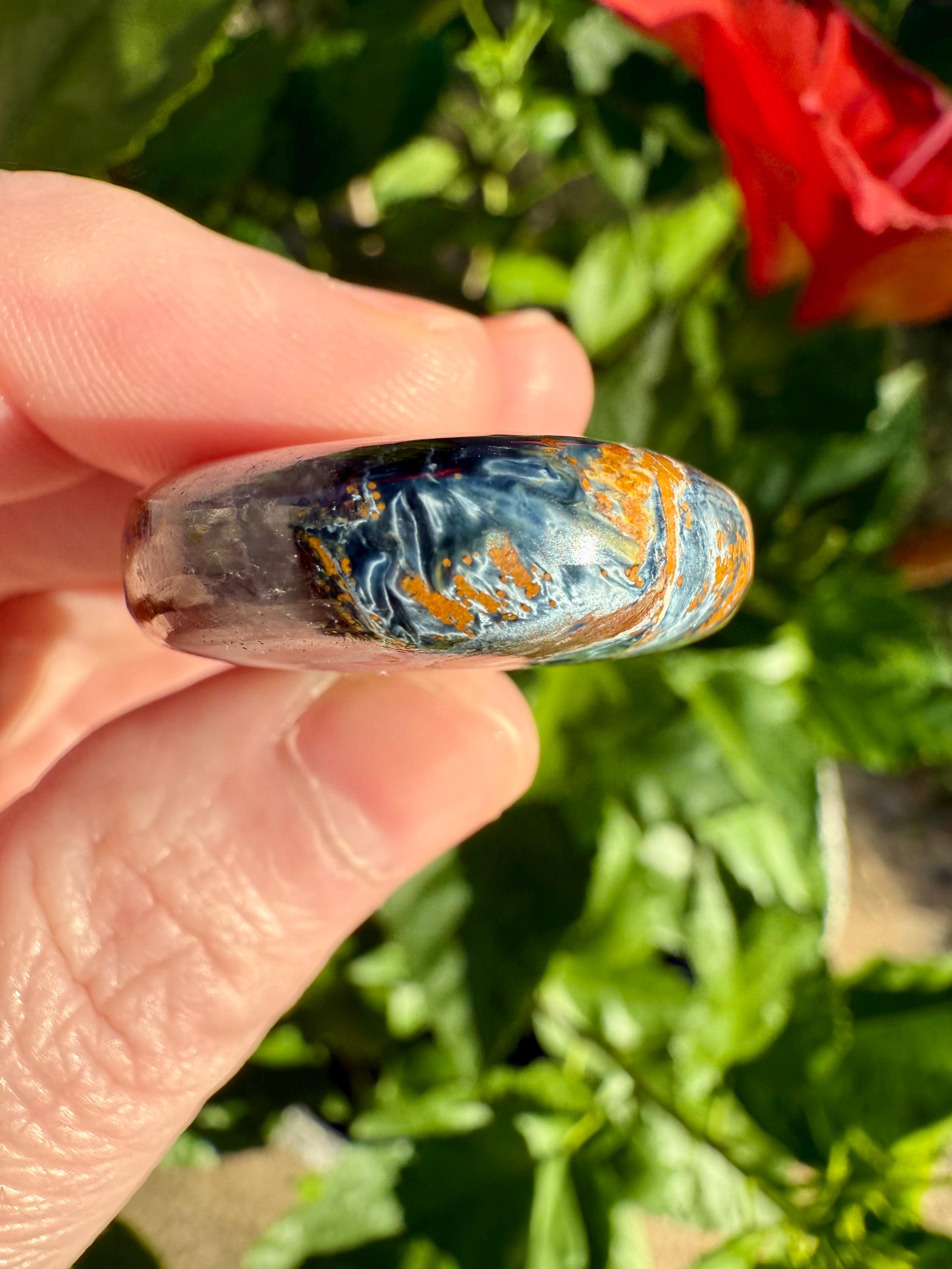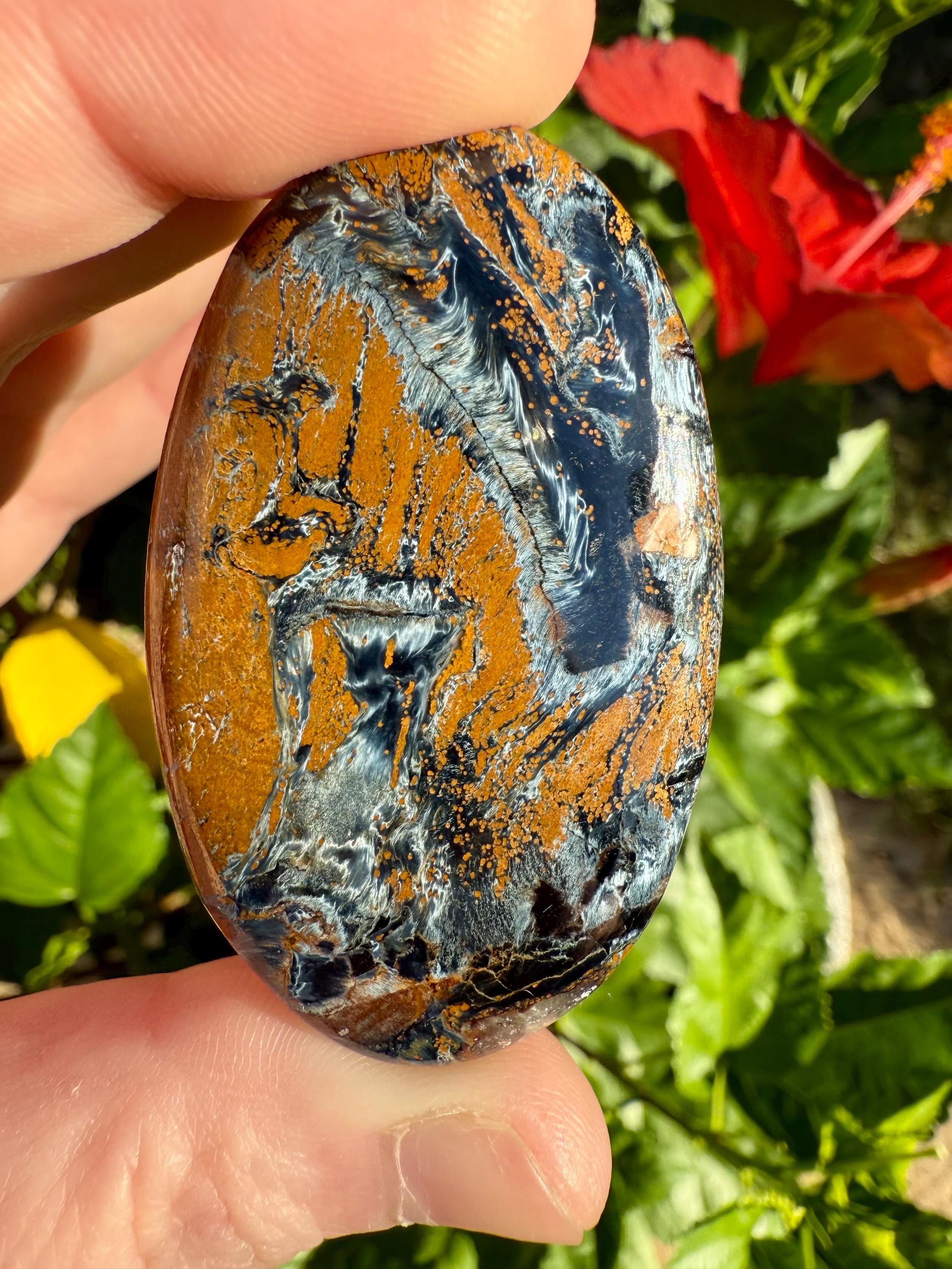 Bring home the powerful energy of Pietersite, known as the “Tempest Stone” for its swirling golden, blue, and brown chatoyancy that shimmers in the light. Each piece is hand-polished to a smooth, glossy finish—perfect for holding in meditation, using in healing work, or adding to your crystal collection.