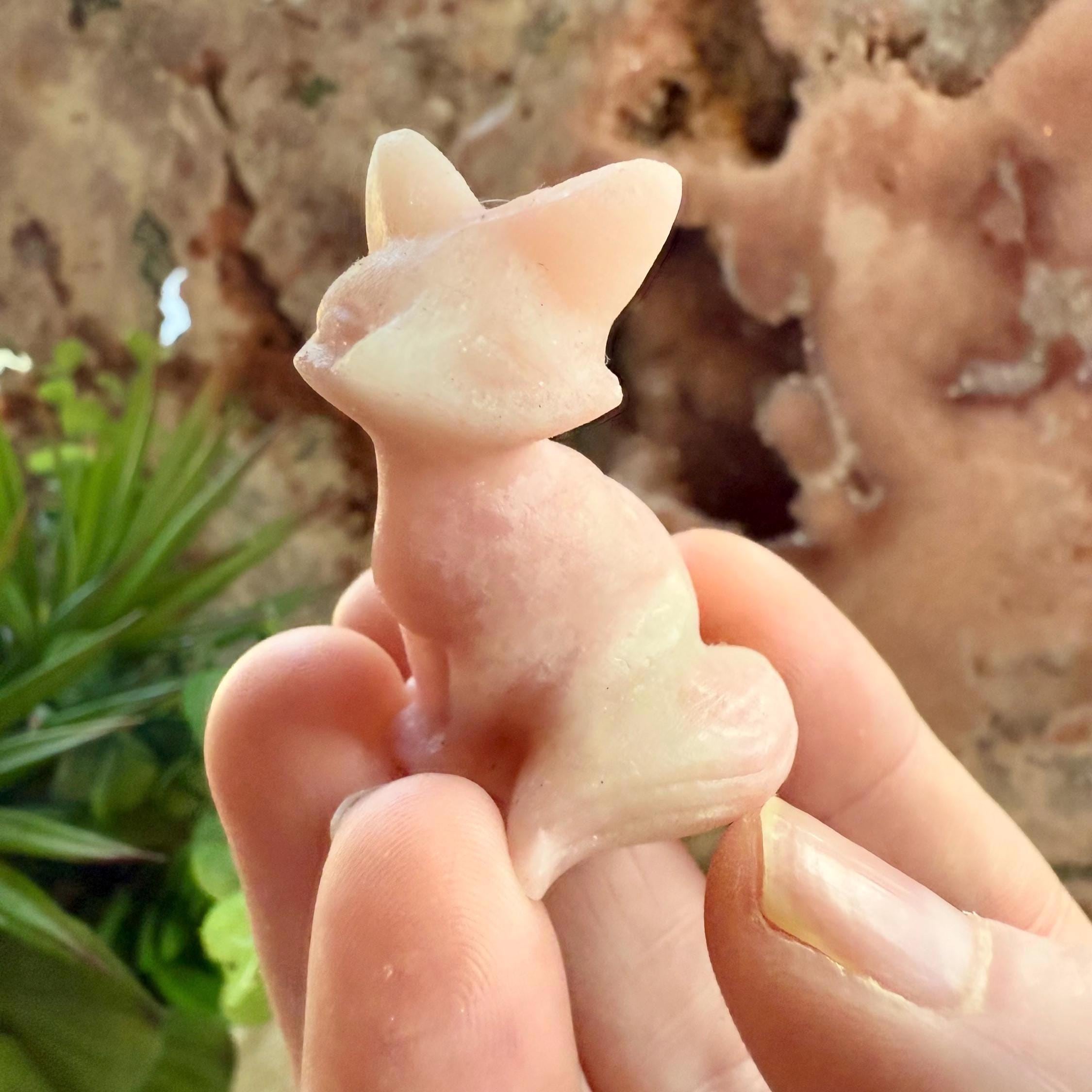 Hand Carved Peruvian Pink Opal Nine tailed Fox- Natural Stone Animal Carvings