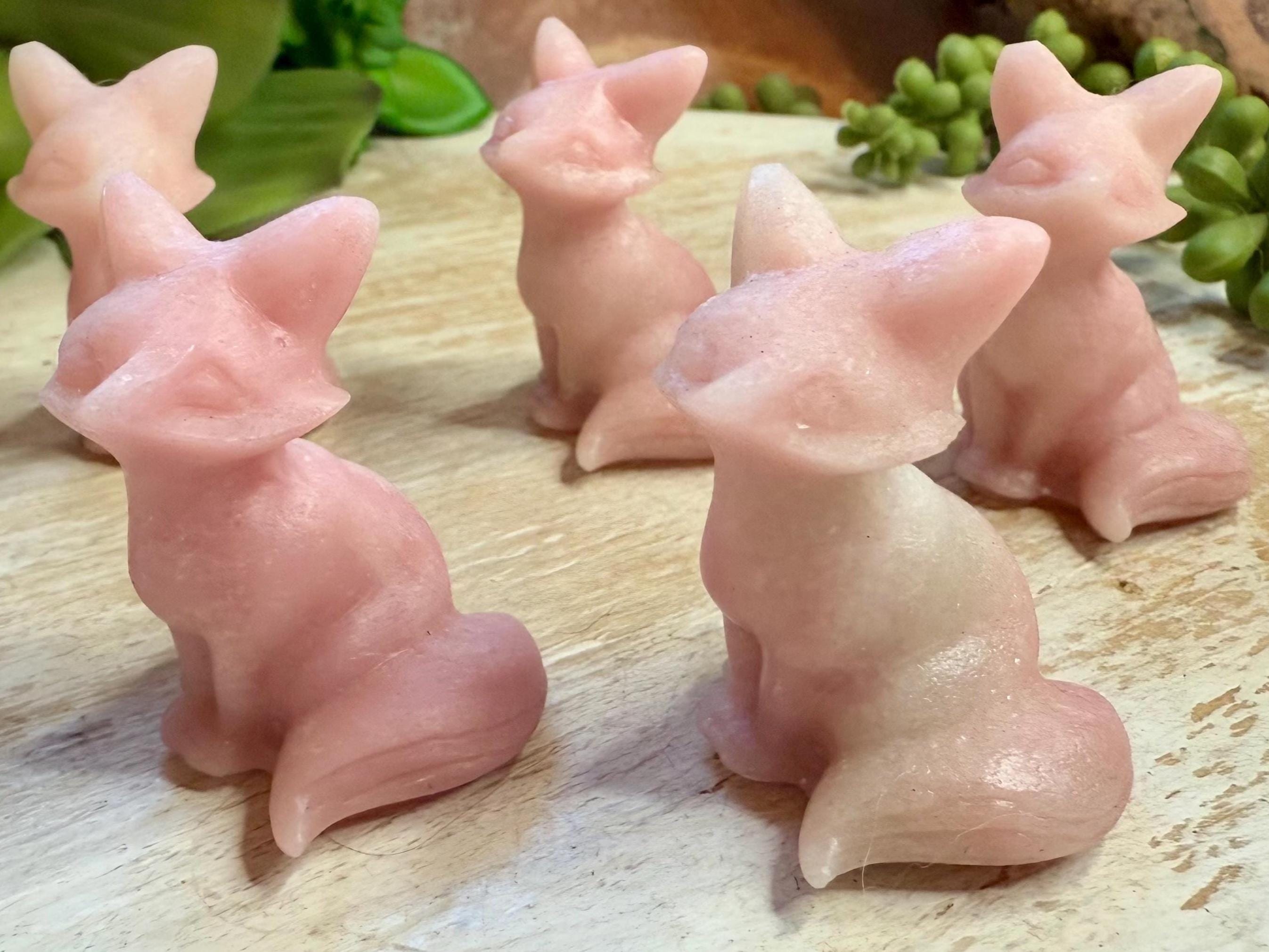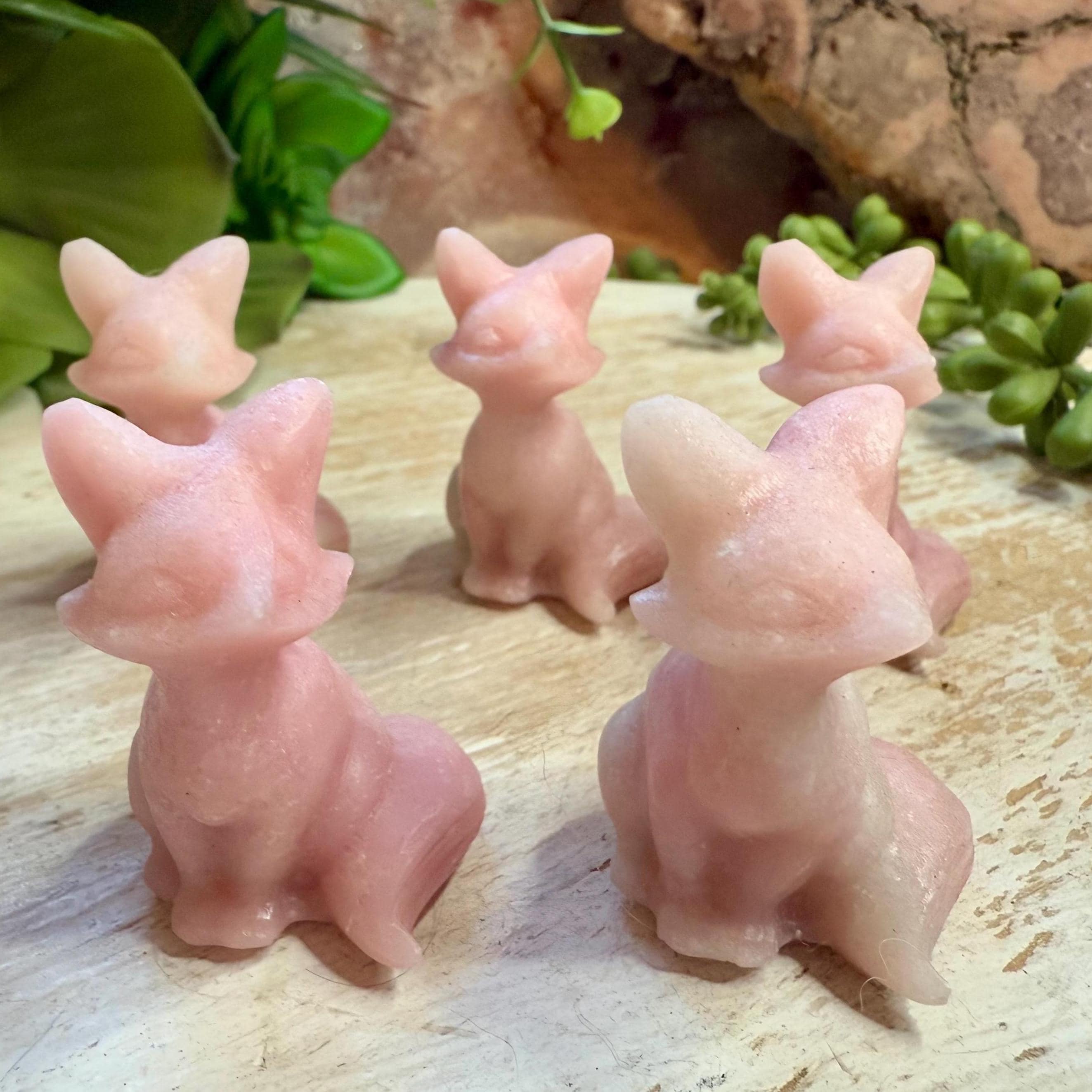 Adorn your space with these adorable pink opal carved fox , each showcasing intricate details and loveable expressions. Crafted from stunning pink opal crystal, these charming pieces bring warmth and positivity into any room. Perfect for nature lovers and crystal enthusiasts alike!